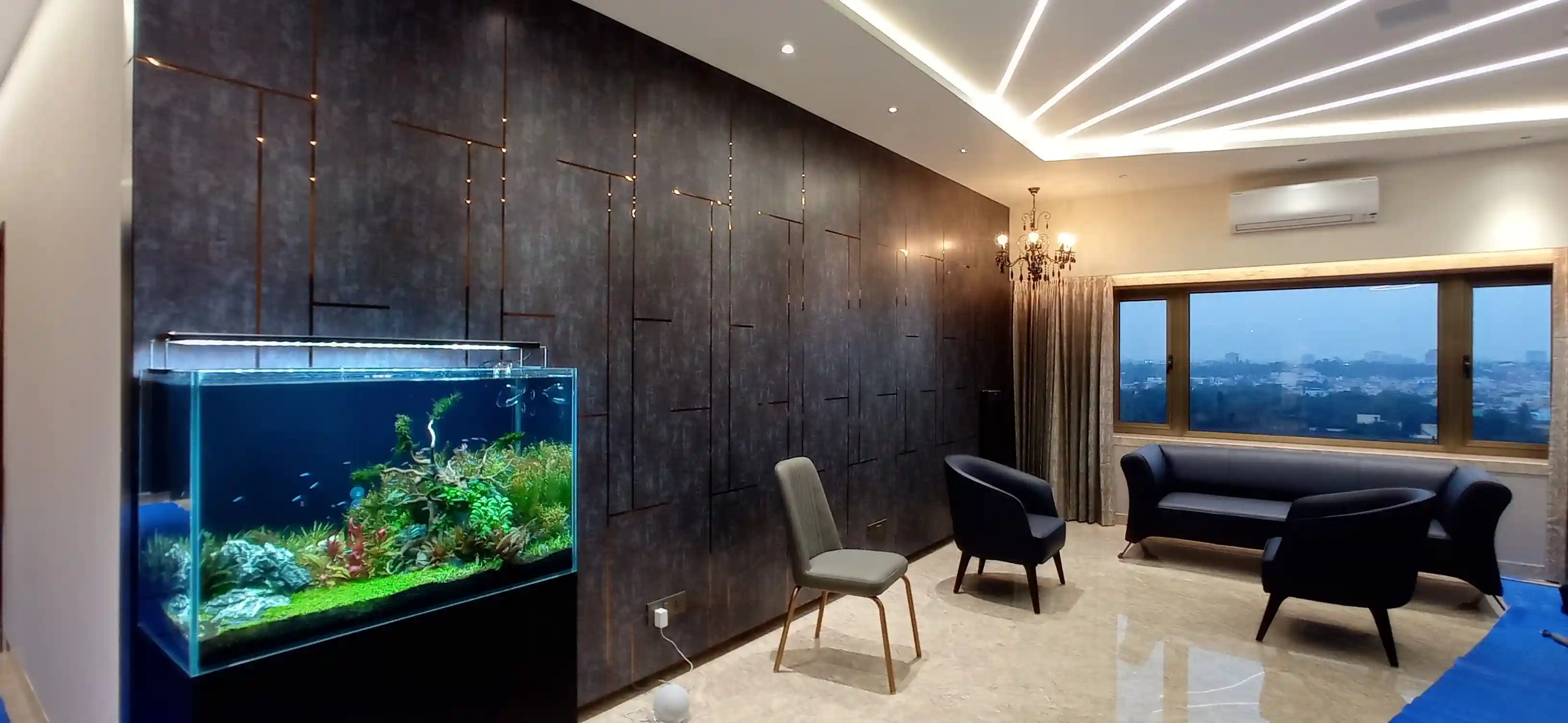 This properties located in one of the prime locations and one of the tall towers of Bangalore with customer has bought two houses on the floor and made enter floor his house he wanted a system that he could use easily and wanted a lot of automated features like opening and closing of curtains digital door locks and good lighting system .